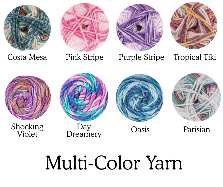 Please note that colors may vary from what is shown on your phone/computer compared to in person. Color placements will vary depending on yarn type, size, and style chosen.